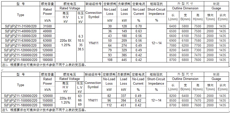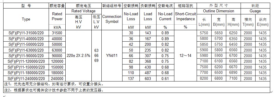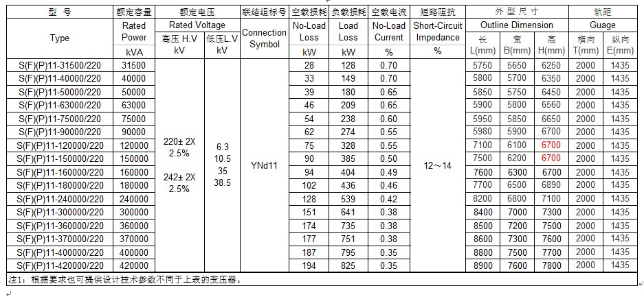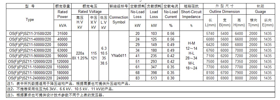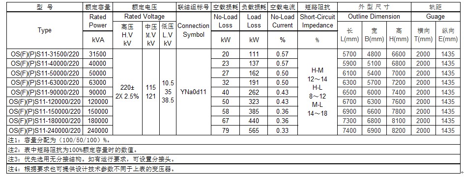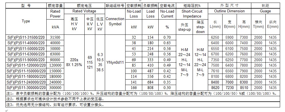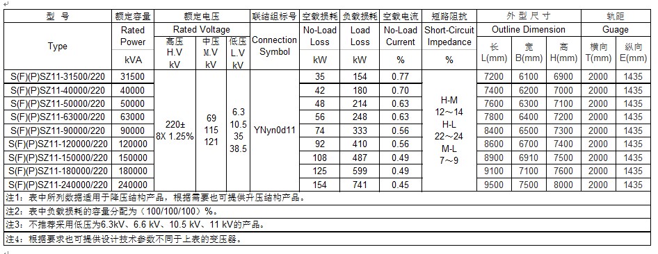 220kV 三相三繞組有載調(diào)壓電力變壓器技術數(shù)據(jù)表
